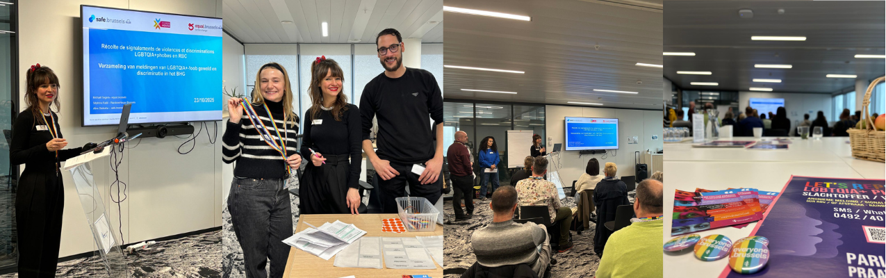 Le 23 octobre, cette mission a pris forme lors de son tout premier événement formel. À l’Iris Tower, les membres du réseau se sont retrouvé·e·s autour du projet “ Récolte de signalements de violences LGBTQIA+phobes en Région Bruxelles-Capitale » porté par equal.brussels, safe.brussels et la RainbowHouse.